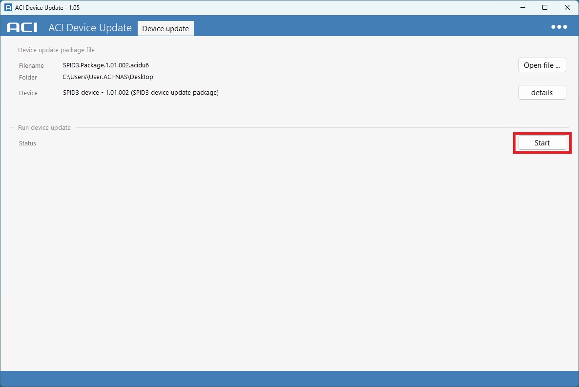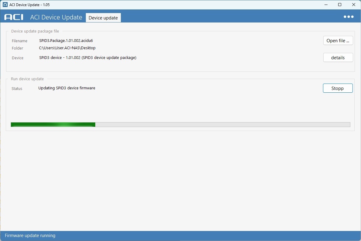 - Öffnen der Firmware Datei mit der Dateierweiterung "acifirm" im oberen Bereich des Programmfensters.